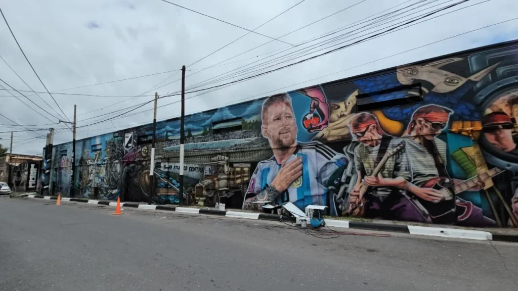 La obra se ubica en Necochea y 25 de Mayo y tiene alrededor de 125 metros cuadrados. Además, cuenta con imágenes de leyendas del deporte, como Messi y Maradona, y del rock, como el Indio Solari.